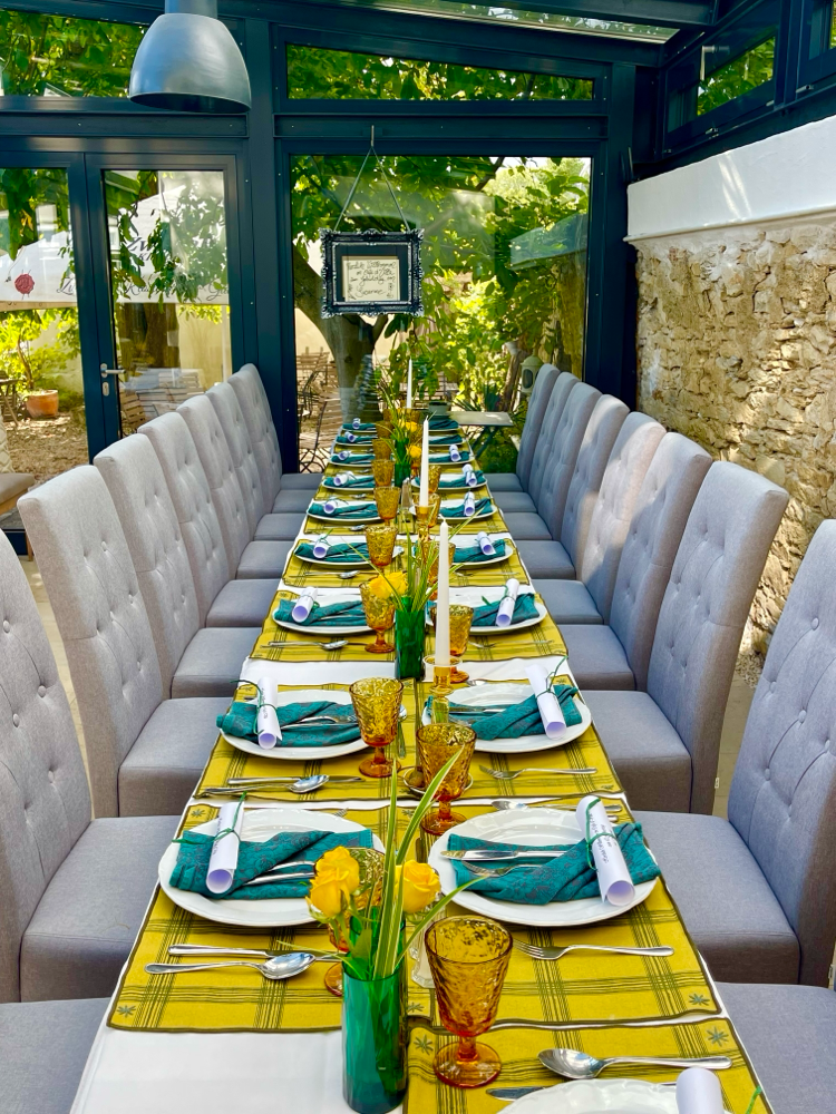 bis zu 20 Gäste an einer Tafel Platz nehmen